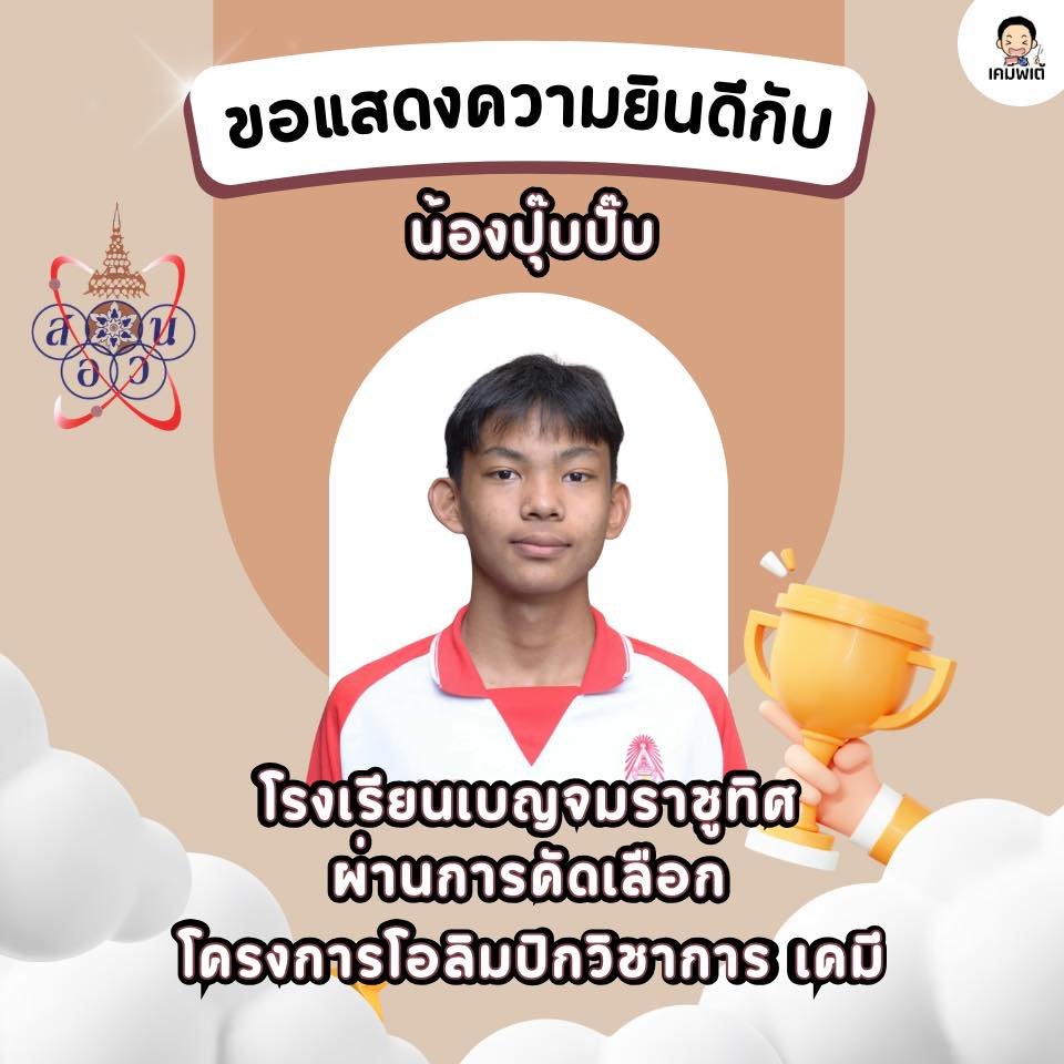 ตอนแรกเกือบถอดใจกับเคมีไปแล้วครับ จนมาเจอพี่เต้ที่ช่วยตบเนื้อหาให้เข้าที่ จากคะแนนรั้งท้าย ตอนนี้ผมทำคะแนนขึ้นมาอยู่แถวหน้าของสายชั้นได้แล้ว
