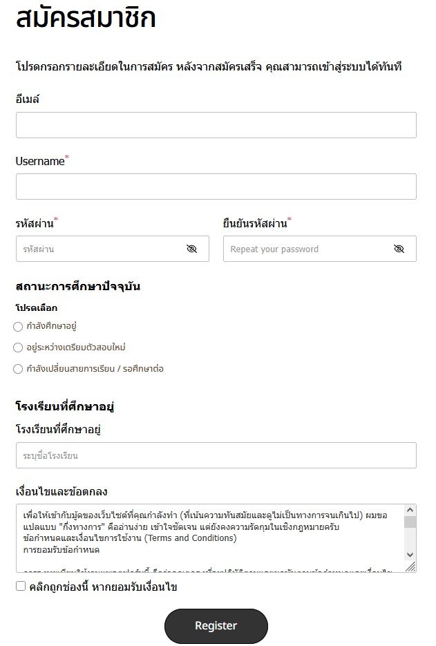 * ช่อง username และอีเมล์ ใช้ในการสู่ระบบ